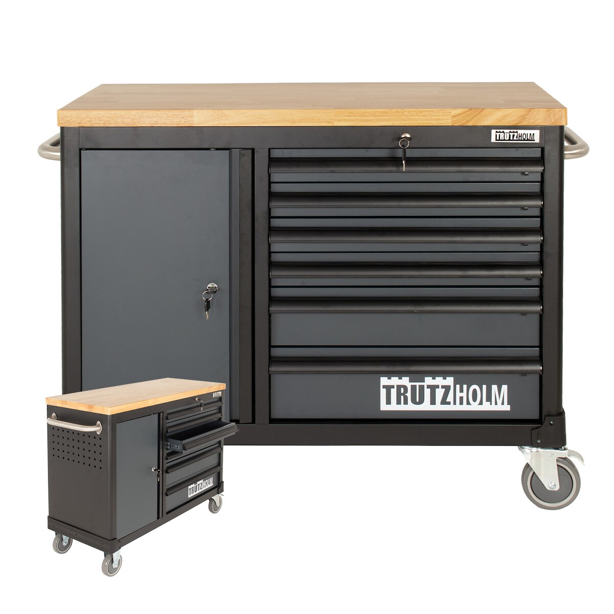 Baumarktplus Werkstattwagen DELUXE 6 Schubladen + Tür unbestückt mit massiver Arbeitsplatte Anthrazit/grau