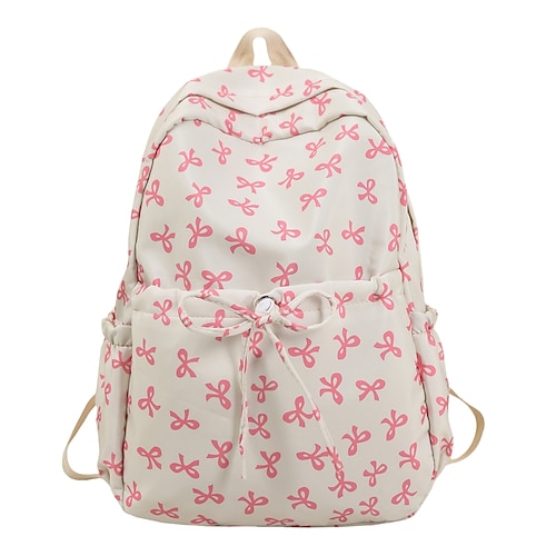 Zaino in stile coreano per ragazze con stampa a fiocco – grazioso zaino scolastico in tela per studenti adolescenti, scuole medie e superiori per il ritorno a scuola