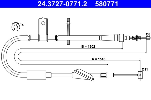 Vaijeri, käsijarru, Taakse, vasen Ate 24.3727-0771.2 - opel agila, suzuki wagon r+ halvkombi, vauxhall agila mk i - OE 47 00 358, 47 05 532, 47 05 708