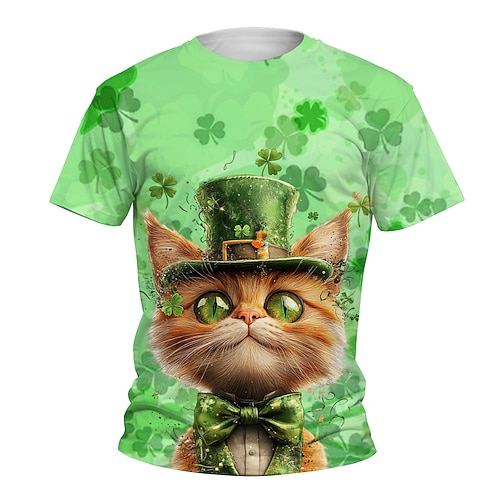 Festa di San Patrizio Gatto Trifoglio irlandesi Maglietta Lucky Clover Grafica Per Da coppia Per uomo Per donna Per adulto giorno di San Patrizio Stampa 3D Feste Casual / quotidiano