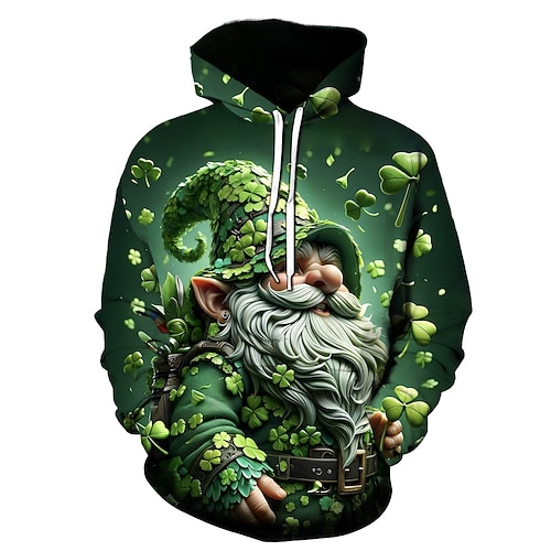 felpa con cappuccio da uomo per il giorno di San Patrizio stampa 3D giorno di San Patrizio girocollo festa strada stampa 3D top a maniche lunghe stile etnico leggero casual nostalgico a b