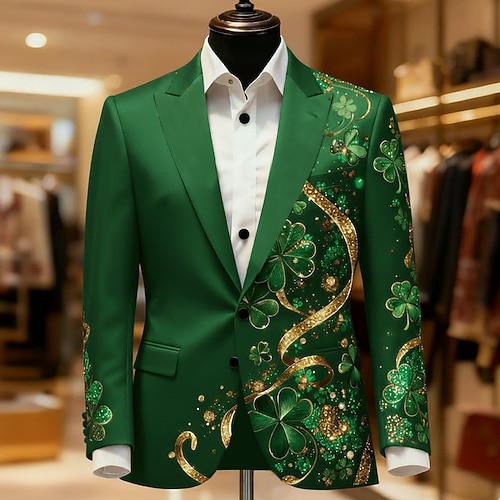 San Patrizio Per uomo Quadrifoglio Giacca blazer Cappotto Di tendenza Confortevole Traspirante Artistico Casual Quotidiano Abbigliamento da sera Festival Tasca Stampa 3D Bottoni Tutte le stagioni