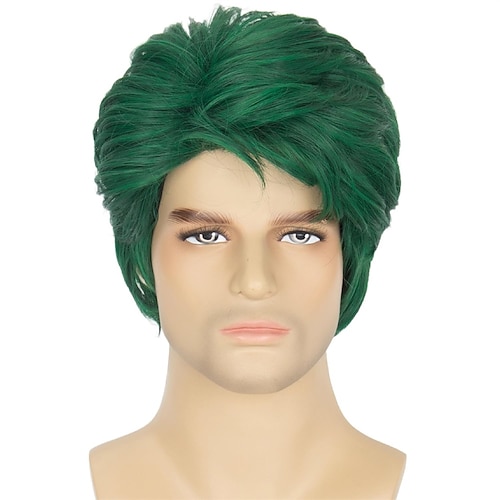 Parrucche per il Giorno di San Patrizio Parrucca corta dritta verde per uomini parruccone sintetico tema scolastico Cosplay