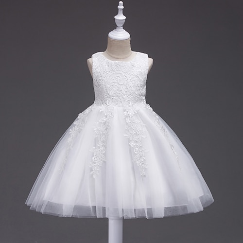 Abito da damigella d'onore bambina Ragazze Abito formale Abiti da sposa Feste Matrimonio Formale Formale Abito per la Prima Comunione Cerniera Rete Tinta unica Senza Maniche Girocollo Bianco Rosa Dai
