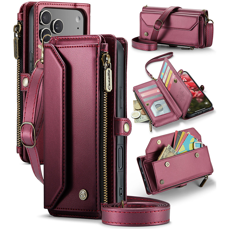 Phone Case For iPhone 17 Pro Max 17 Air 17 Wallet Case with Lanyard with Wrist Strap Kickstand TPU PU Leather