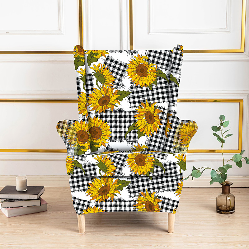 Wingback Chair Cover Floral Striped Geometric Printed Polyester Slipcover Full Cover Modern Foldable Fashion Chair Protector Seat Cover Armchair Cover
