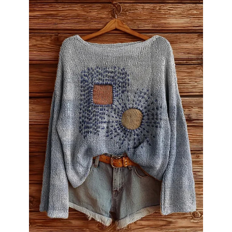 Women's T Shirt Graphic Geometric Vintage Stylish Casual Long Sleeve Crew Neck Regular Tops Daily Print Blue Purple Orange Green Gray Spring Fall Winter