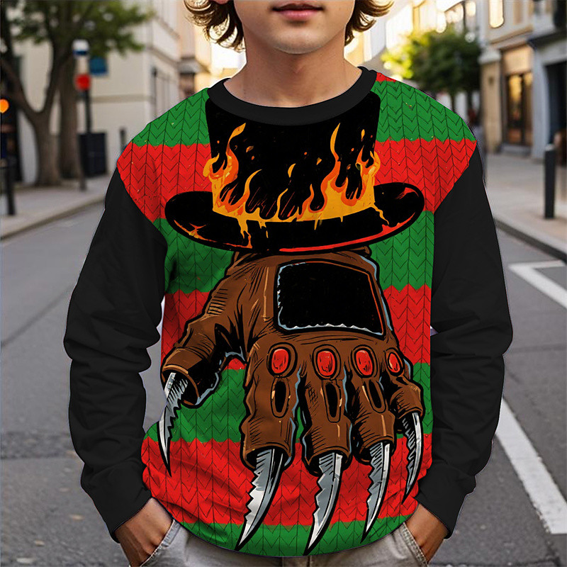 Halloween Boys' 3D Cartoon T shirt Tee Long Sleeve Spring Fall Fashion Basic Kids 4-12 Years Crew Neck Outdoor Casual Daily Regular Fit