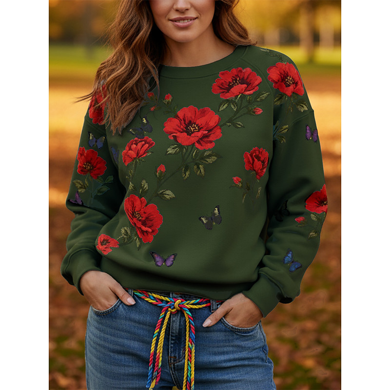 Women's Pullover Sweatshirts Floral Fashion Streetwear Classic Long Sleeve Crew Neck Round Neck Regular Tops Dailywear Casual Print Blue Black Green Spring Fall
