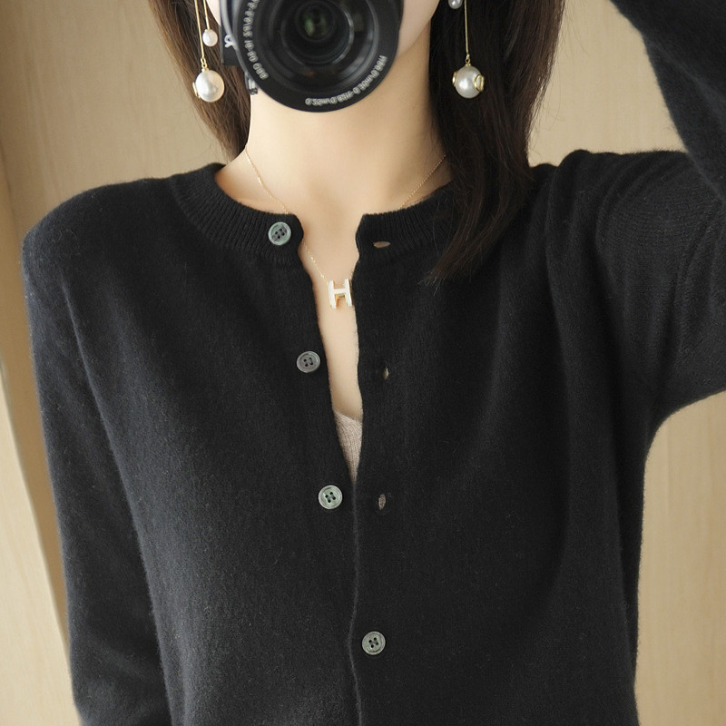 Women's Sweater Cardigan Streetwear Casual Solid Color Crew Neck Knitted Long Sleeve Regular Tops Knit Daily Holiday Going out Black Khaki Fall Winter