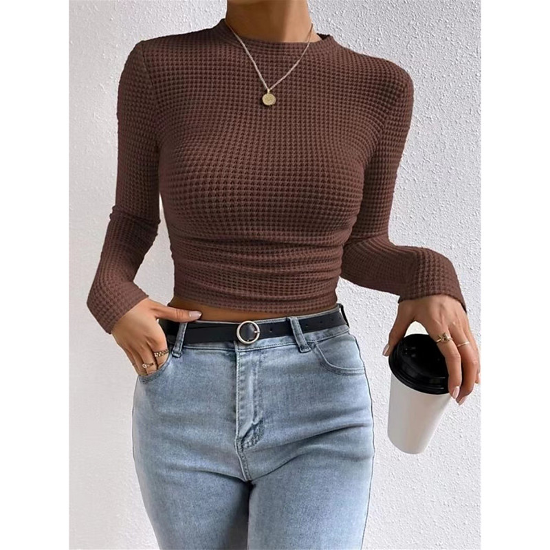 Women's Blouse Solid Color Stylish Casual Long Sleeve Crew Neck Regular Tops Daily Ruched Black White Brown Apricot Spring Fall Winter