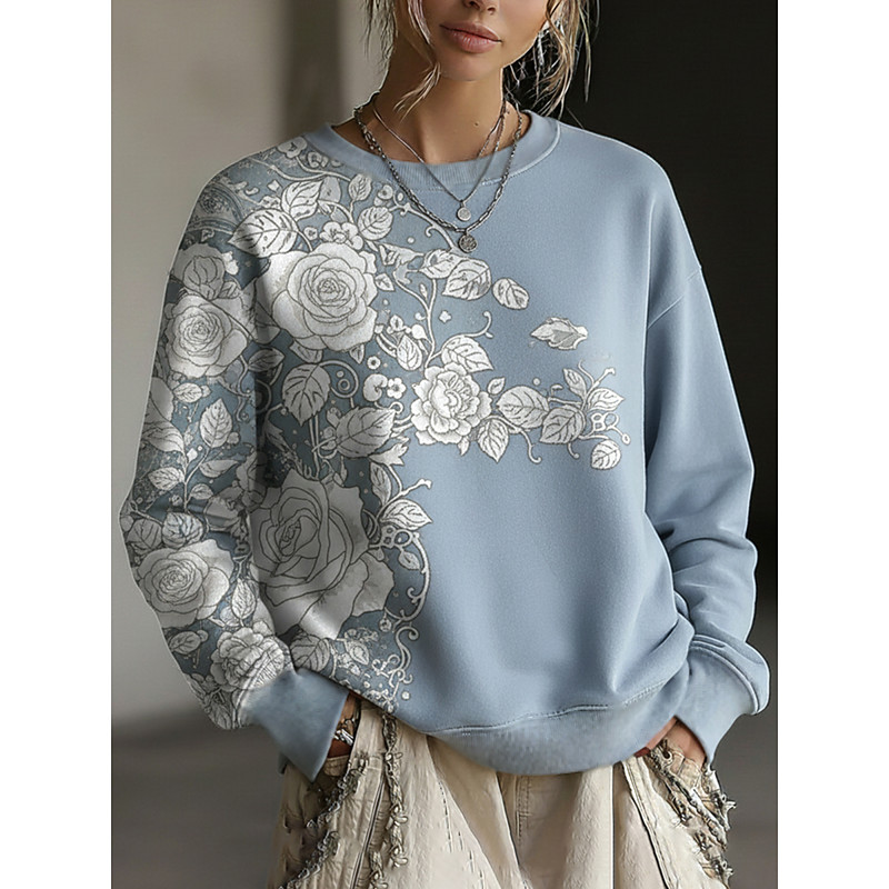 Women's Pullover Sweatshirt Floral Casual Long Sleeve Crew Neck Regular Tops Street Dailywear Casual Blue Purple Spring Fall Winter