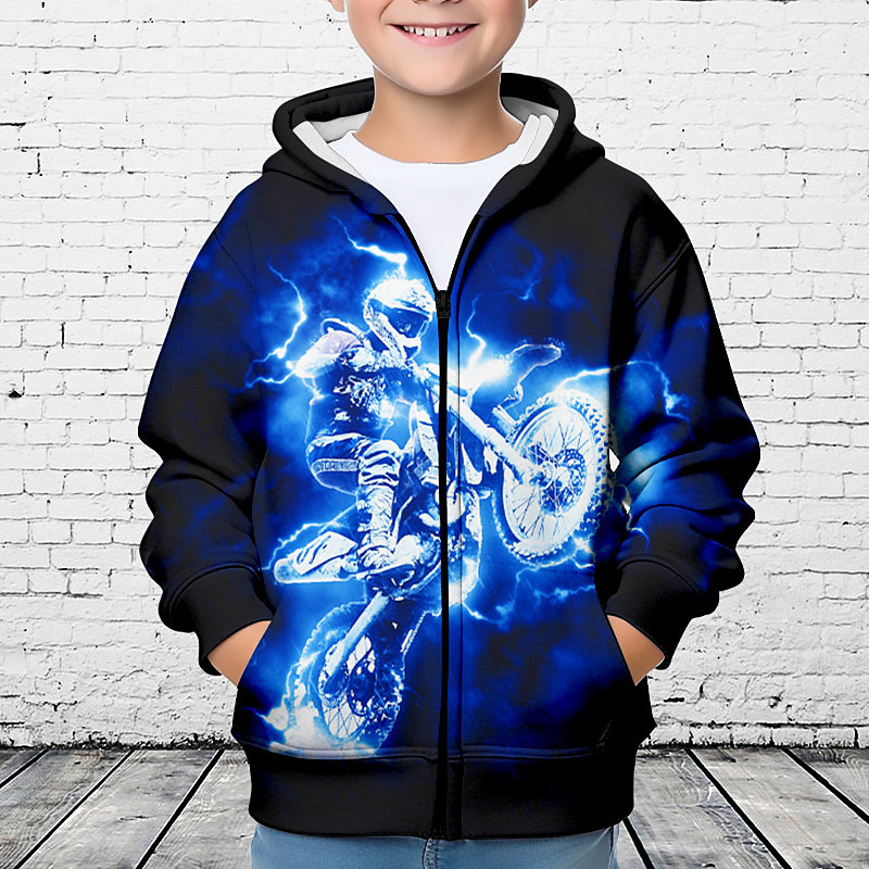 Boys 3D Car Hoodie Coat Outerwear Long Sleeve 3D Print Fall Winter Fashion Streetwear Cool Polyester Kids 3-12 Years Outdoor Casual Daily Regular Fit
