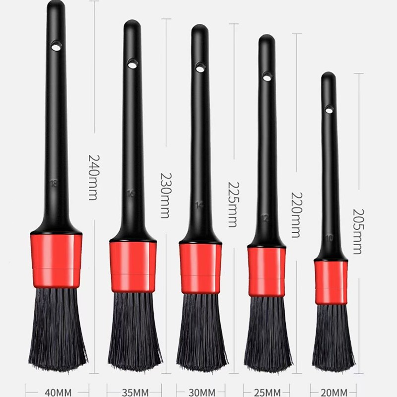 5pcs Car Detail Brush Set with Durable Plastic Handles, Black and Red, Ideal for Dashboard, Vents, Wheels, and More, Stylish Automotive Cleaning Tools