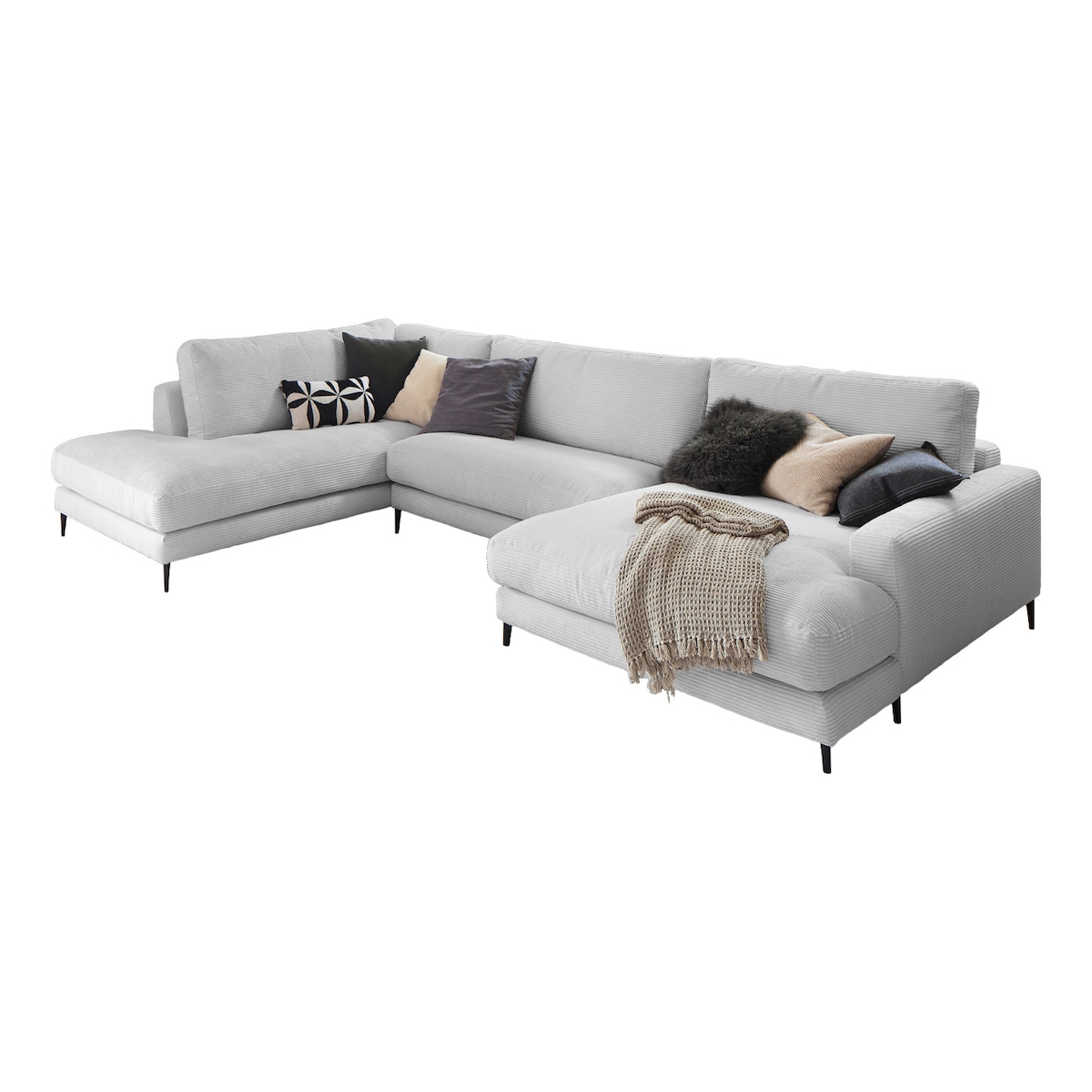 KAWOLA Sofa CARA Wohnlandschaft U-Form Cord hellgrau Longchair rechts