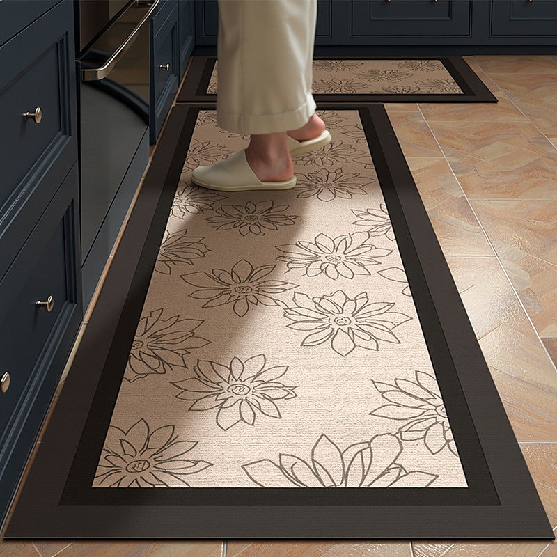 Kitchen Runner Rugs Luxury Style Diatomaceous Earth Cream Design Large Area Full Coverage Absorbent Oil Resistant Quick Dry Non Slip Kitchen Floor Mat Home Decoration Carpet