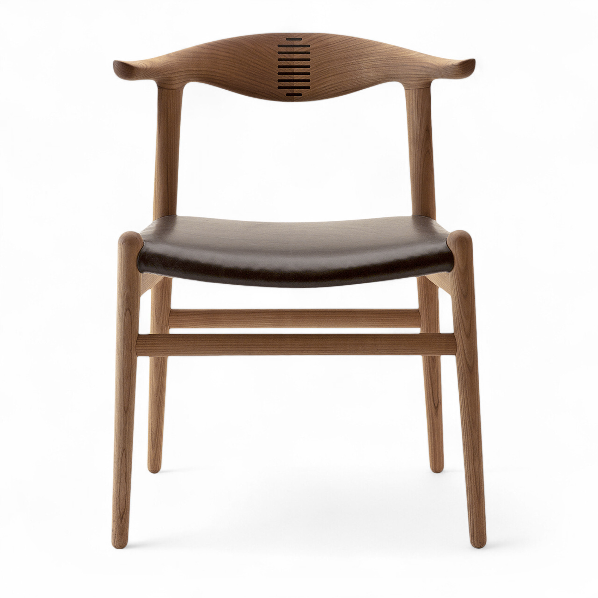 PP Möbler - PP505 Cow Horn Chair - Brun lädersits - Körsbär oljad - Matstolar - Hans J. Wegner - Träfärgad - Trä