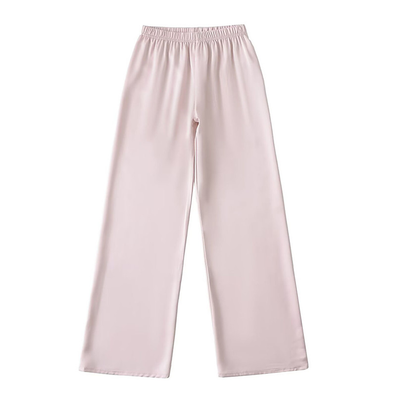 Women's Wide Leg Chinos Straight Elegant Vacation Vintage Full Length Medium Waist Plain Patchwork Elastic Waistband Comfy Breathable Inelastic Daily Home Outdoor Light Sky Blue Black Champagne Pale