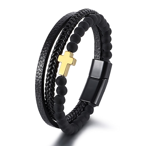 Bracciale da uomo con chiusura magnetica: design in pietra naturale e similpelle, elegante e resistente, perfetto per l'uso casual e quotidiano.