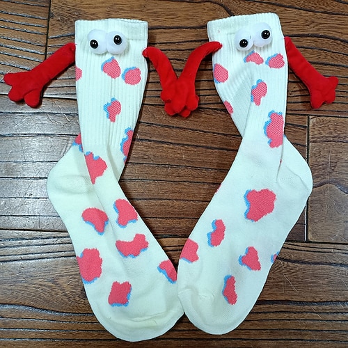 Herzförmige Magnetsocken für Paare zum Valentinstag, atmungsaktive, wadenlange Socken mit Händchenhalten-Motiv, das perfekte Valentinstagsgeschenk, ideal für Paare, kuschelig und stylisch für die