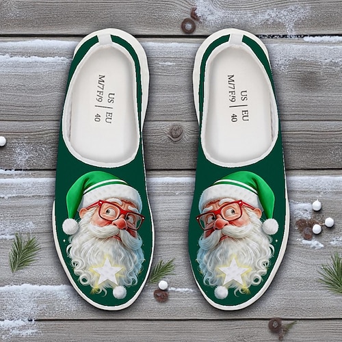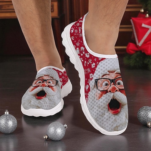 Sneakers slip-on da uomo con stampa di Babbo Natale, scarpe casual leggere e traspiranti per feste, abiti festivi e regali invernali