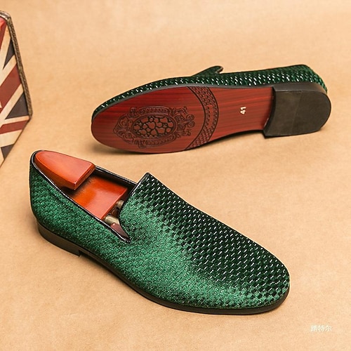 mocassini intrecciati verdi da uomo: scarpe slip-on alla moda con trama intrecciata, perfette per le feste di San Patrizio e le uscite informali