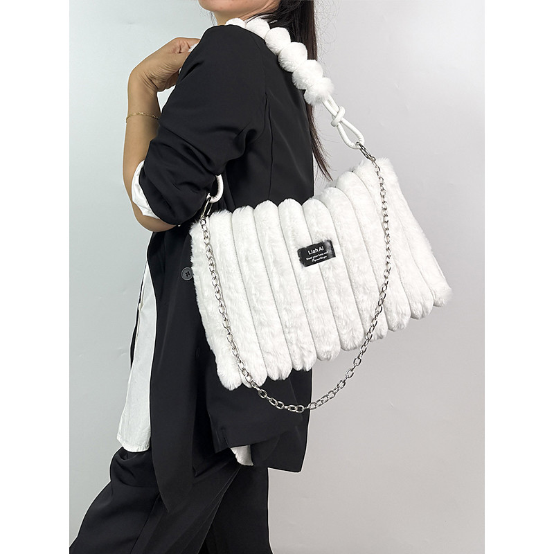 Women's Faux Fur Shoulder Bag, Multi-Color, Versatile Carry Styles, Fashionable Chain Strap, Ideal for Casual Party Wear