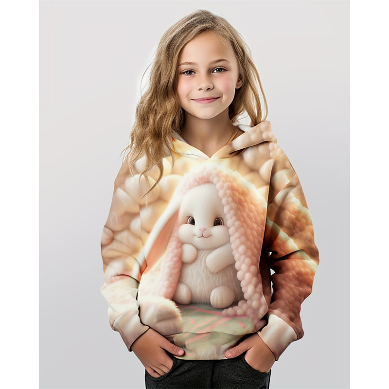 Easter Girls' 3D Graphic Rabbit Hoodie Long Sleeve Fall Winter Fashion Adorable Basic Kids 4-12 Years Hooded Outdoor Casual Daily Regular Fit
