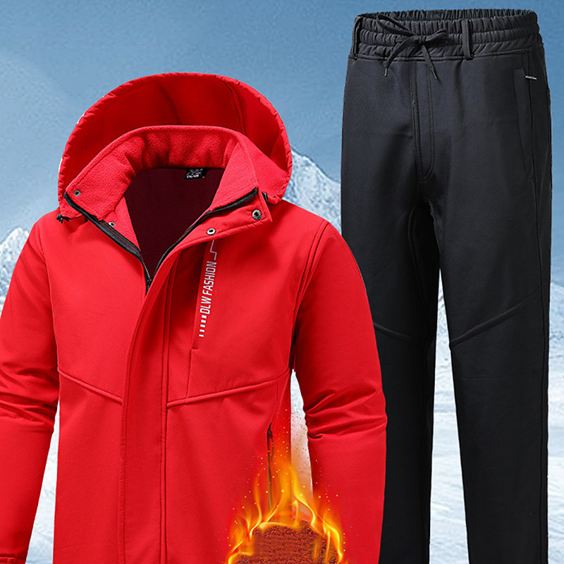 Men's Hiking Jacket Fleece Jacket Winter Coat Puffer Jacket Thermal Set Winter Outdoor Thermal Warm Waterproof Windproof Top Dark Grey Black Red Light Grey Green