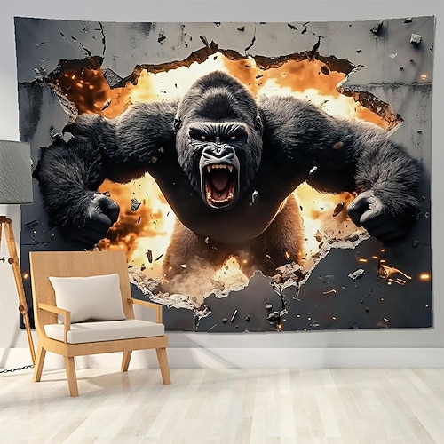 Realistischer 3D-Wandteppich mit Grizzlybär – ein wildes Tier, das durch die Wand bricht. Wanddekoration für Männerhöhle, Jungenzimmer, Spielzimmer, Hintergrund – ein tolles Geschenk für Männer.