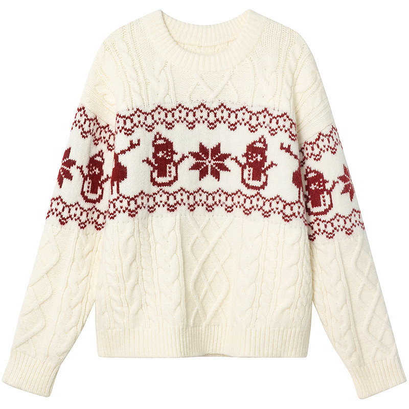 Women's Christmas Sweater Fair Isle Sweater Sweater Pullover Fashion Streetwear Casual Geometric Crew Neck Knitted Print Long Sleeve Regular Tops Knit Daily Holiday Going out White Red Fall Winter