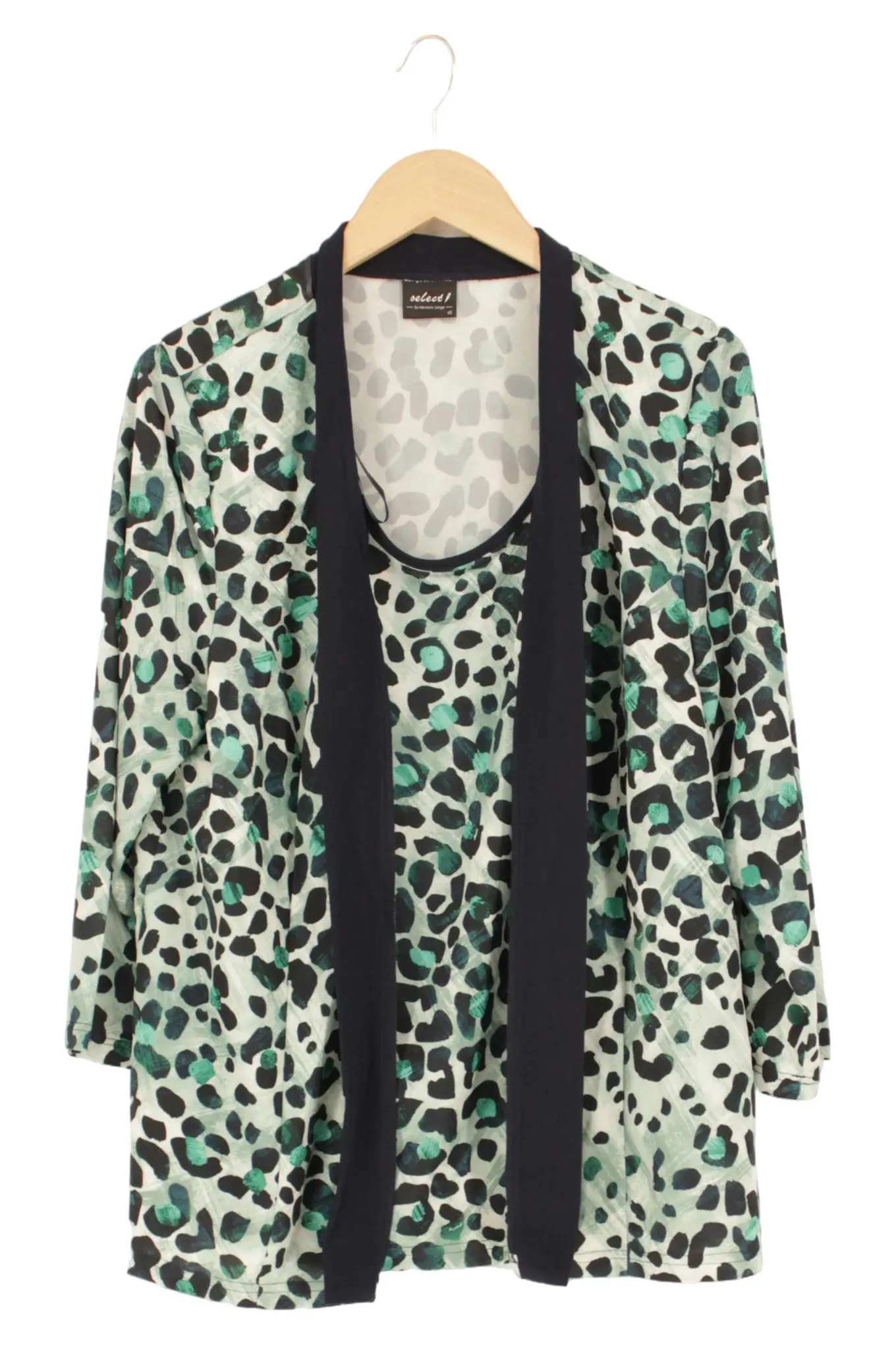HERMANN LANGE Bluse Größe 46 Grün Leopardenmuster Damen