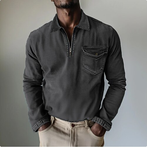 Per uomo Felpa Pullover Polo con zip Vacanza Streetwear Con cerniera Manica Lunga Moda Essenziale Semplice Tasca Moda Primavera Autunno Tutte le stagioni Vestibilità regolare Nero Rosa Blu marino