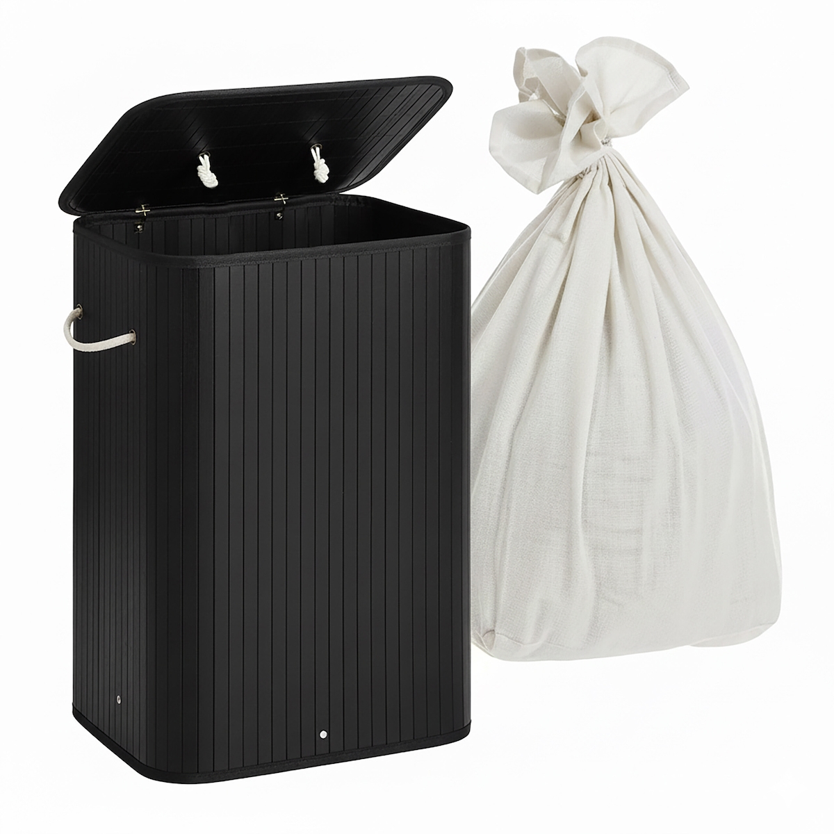 Relaxdays Wäschekorb mit Deckel, Bambus, 80 Liter, faltbarer Wäschesammler, HxBxT: 60 x 40 x 30 cm, Wäschetruhe, schwarz