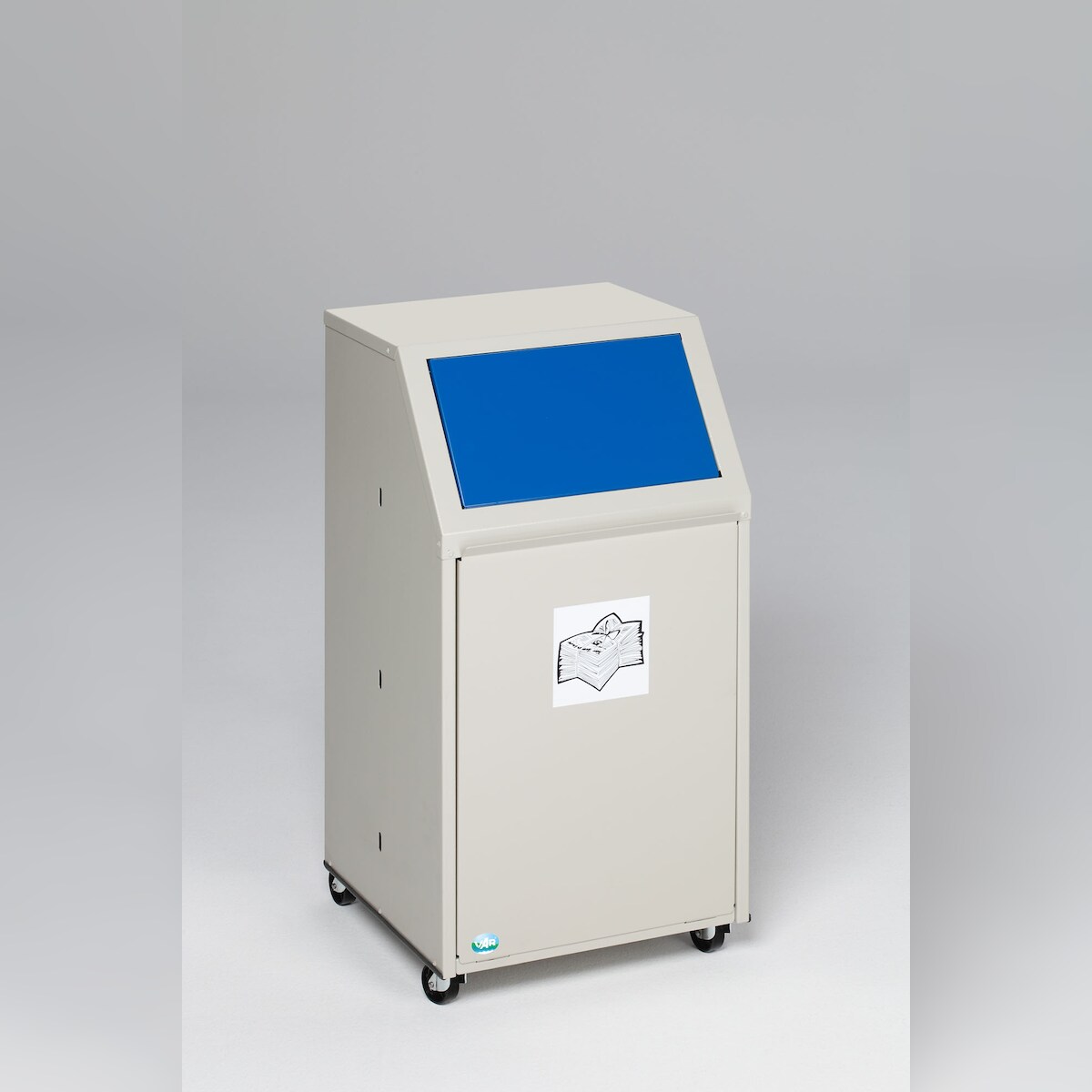 PROREGAL Robuster Wertstoffsammler | für Papier | Fahrbar | 39 Liter, HxBxT 80x45,5x45,5cm | Verzinkter Stahl | Blau | Mülleimer Abfalleimer