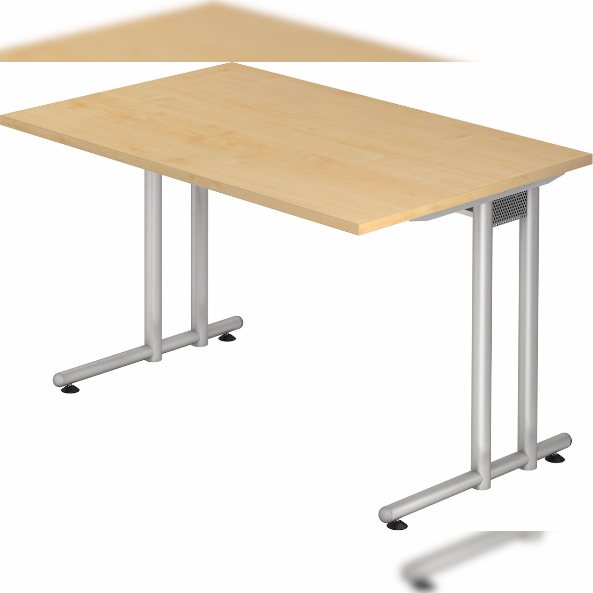 bümö Schreibtisch klein N-Serie 120x80 cm, Tischplatte aus Holz in Ahorn, Gestell aus Metall in Silber - PC Tisch, kleiner Computertisch für's Büro,