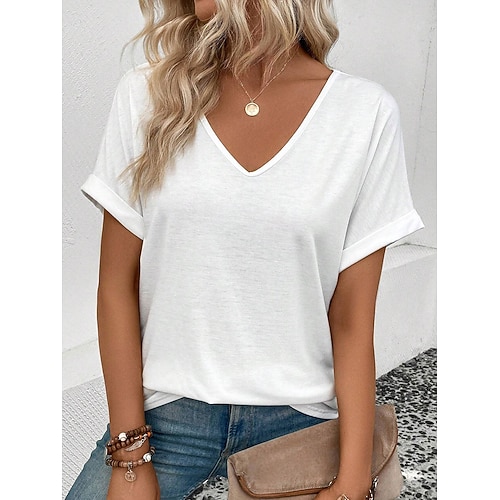 Per donna Maglietta Maglietta bordeaux Top Eleganti Semplice Essenziale Manica Corta Scollo a V Top Regolari Quotidiano Weekend Taglio Nero Vino Blu marino Azzurro cielo Viola Estate Primavera Autunno