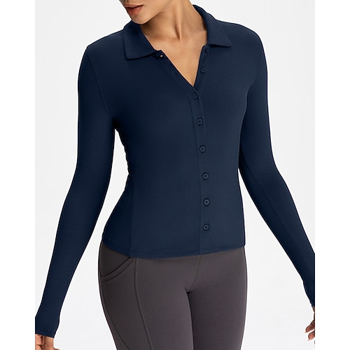 Per donna Tinta unita Maglia da tennis Top sportivo Elegante Bottoni Elastico Traspirante Golf Pickleball Yoga Collo ripiegato Top Inverno Nero Bianco Rosa Abbigliamento da tennis