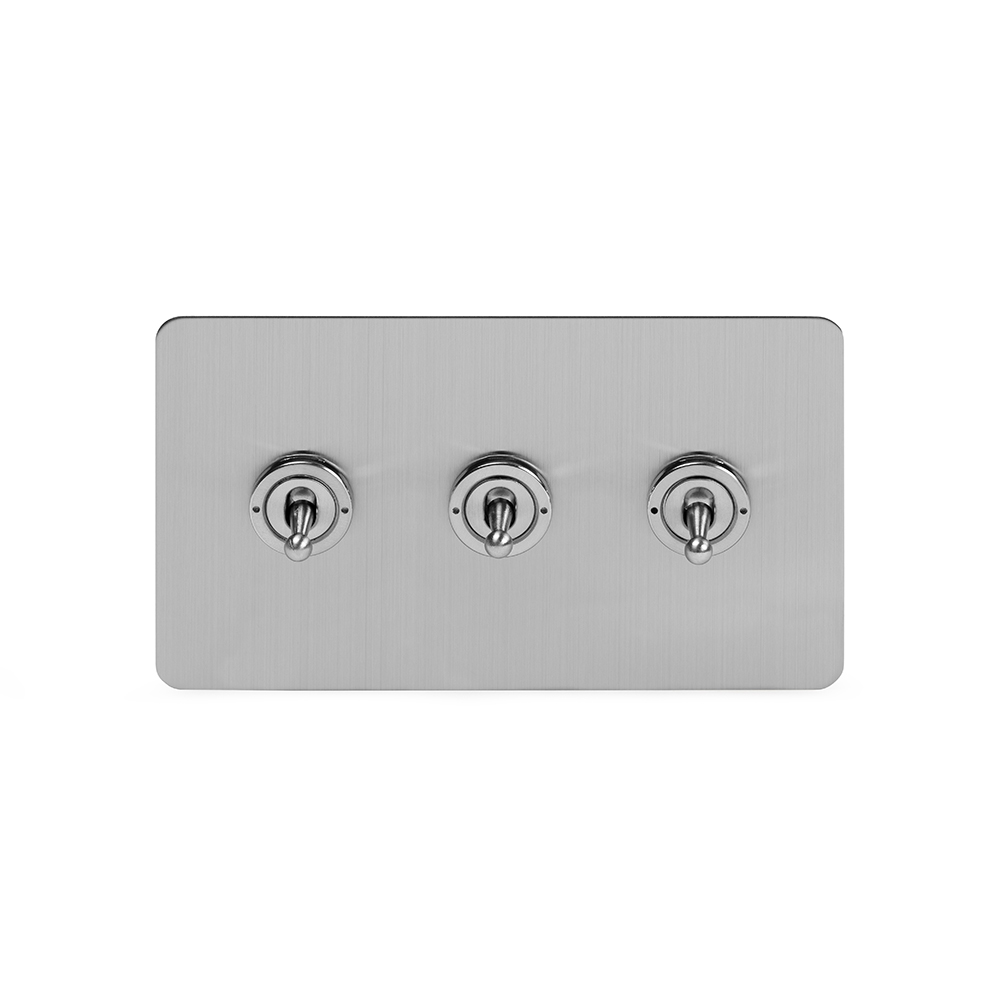 Soho Lighting Brushed Chrome Flat Plate 20A 3 Gang Intermediate Toggle Switch Screwless