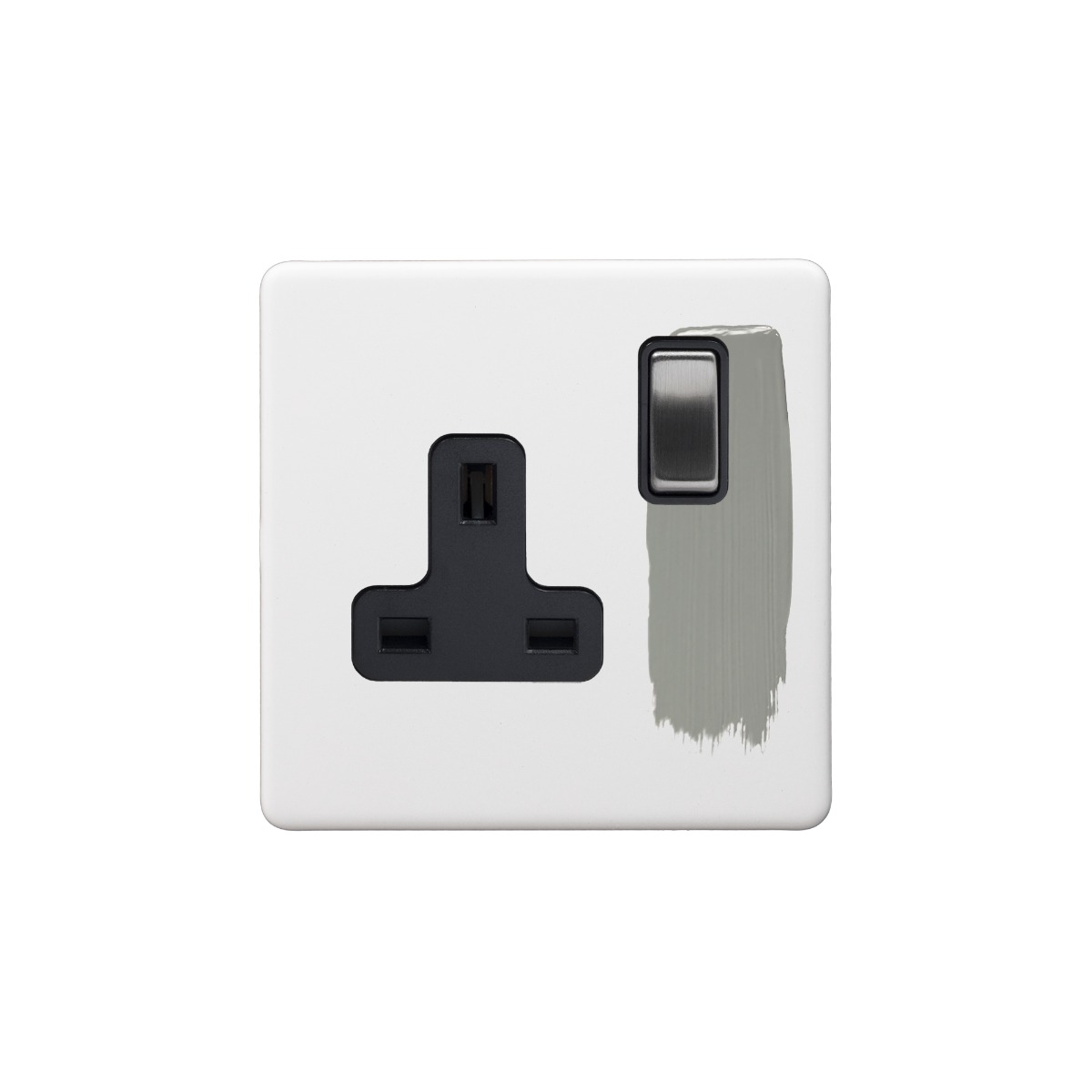Soho Lighting Primed Paintable 1 Gang Socket 13A Double Pole with Brushed Chrome Switch and Black Insert - Size: 86mm x 86mm x 4.5mm