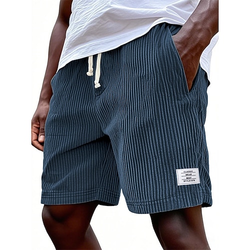 Per uomo Pantaloncini Estivi Shorts da Spiaggia Pantaloncini casual Pantaloncini di velluto a coste Coulisse Elastico in vita Tinta unica Comodità Lunghezza al ginocchio Quotidiano All'aperto Ferie