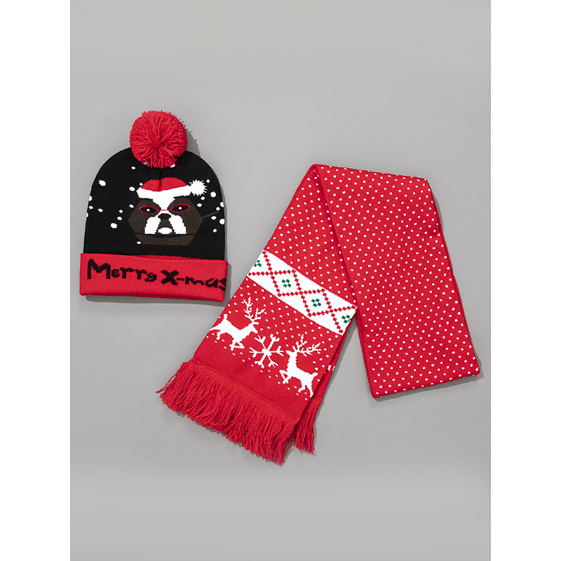 Women's Christmas Knit Hat and Scarf Set, Reindeer Design, Multiple Patterns, Cozy and Festive for Holiday Parties and Winter Wear
