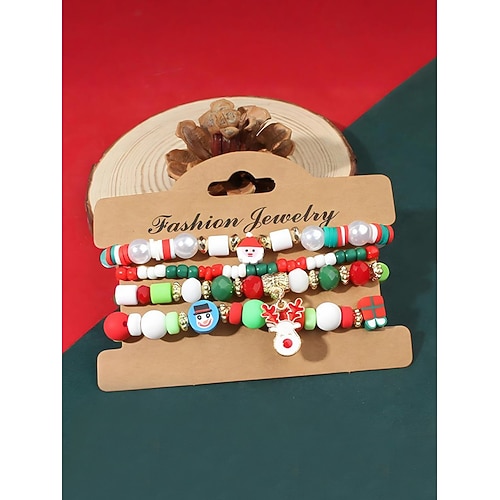 Set di braccialetti natalizi da donna con perline e ciondoli a forma di Babbo Natale, renna e pupazzo di neve, braccialetti elastici con perle rosse e verdi, regalo di gioielli per le feste per lei