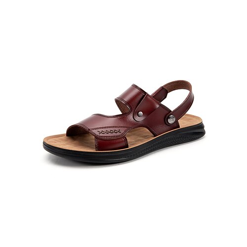 Sandali da uomo in similpelle marrone con cinturino regolabile, suola ammortizzata e design traforato, comodi per passeggiate all'aperto, abbigliamento casual estivo