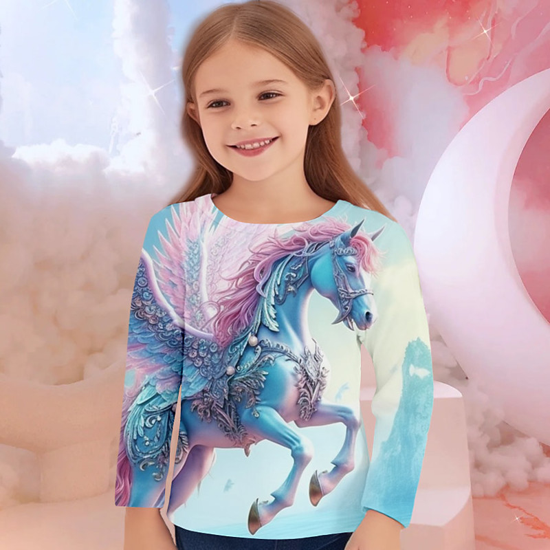 Girls' 3D Unicorn Horse Tee Shirts Long Sleeve 3D Print Spring Fall Active Fashion Cute Kids 3-12 Years Crew Neck Outdoor Casual Daily Regular Fit