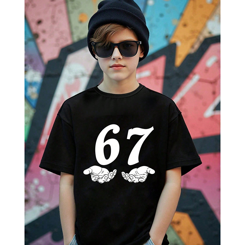 Cotton Kids Boys' Black White Graphic Funny Slang 67 T shirt Blouse Crew Neck Short Sleeve Outdoor Dailywear Fashion Streetwear Designer Printing Summer
