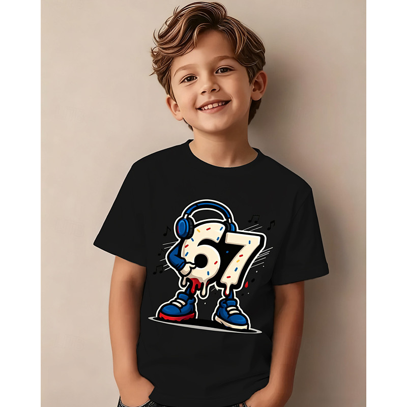 Cotton Kids Boys' Black White Graphic Cartoon Funny Slang 67 T shirt Blouse Crew Neck Short Sleeve Outdoor Dailywear Fashion Streetwear Designer Printing Summer