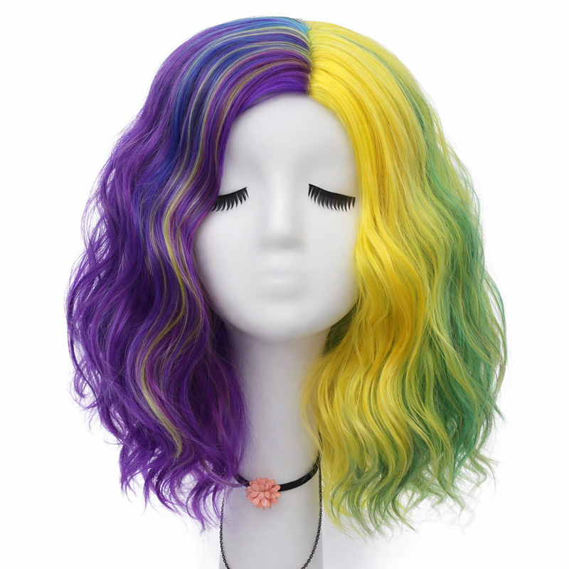 Carnival Wig Purple Green Yellow Curly Short Synthetic Festival Wig Mardi Gras Parade Cosplay Costume Hair for Women