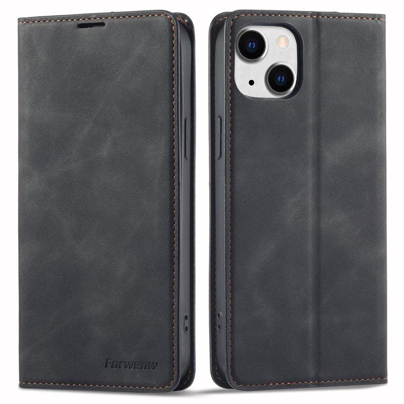 FORWENW Mobilskal till iPhone 14 Plus i Skinvänligt Konstläder - Svart