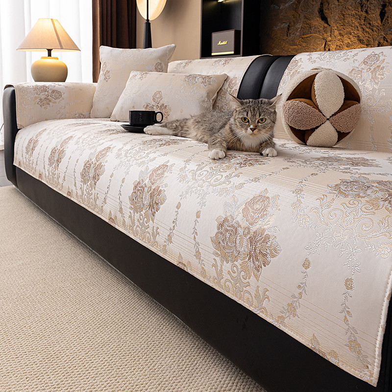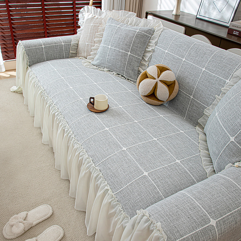Skirt Edge Sofa Towel, Printed Dustproof Non-Slip Slipcover, Elegant and Simple Sofa Protector for 1-4 Cushion and L-Shaped Sofas, Easy to Install